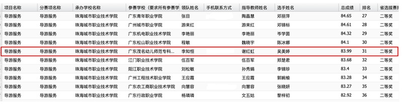 本次大赛由广东省教育厅统一部署,旨在以赛促学、以赛促教、以赛促建,对接国赛,对选手要求高。比赛历时3天,共包括理论测试、现场导游词创作及讲解、自选景点导游讲解、英语口语测试、才艺展示五个部分。在比赛过程中,我院参赛选手吴美婷沉重冷静,不畏强手,以饱满的净胜状态完成了所有比赛任务,充分展示出良好的心里素质和职业素养,最终成绩不负众望。