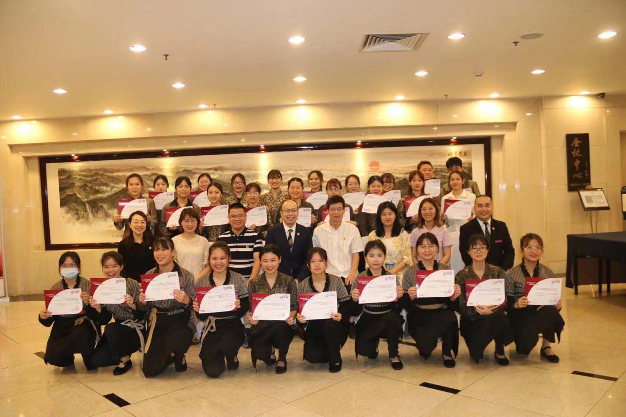 ↑酒店总经理为学生们颁发实习证书