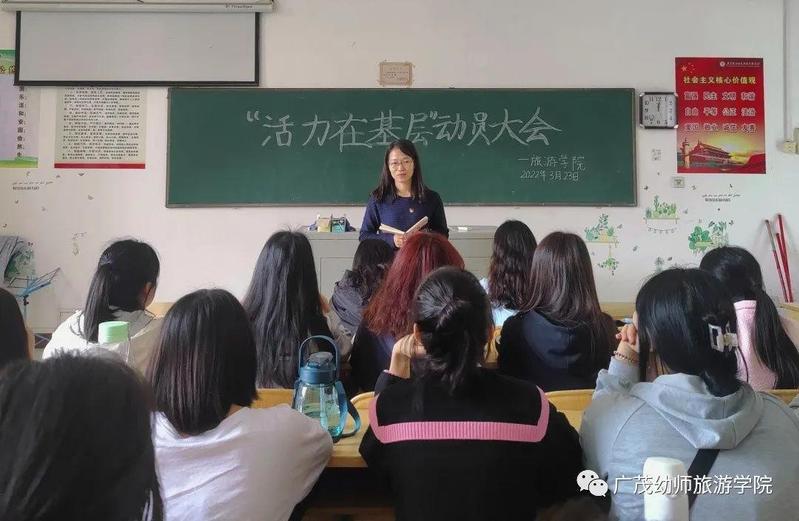 3月23日,在荟文二125召开了旅游学院“活动在基层”员大会。旅游学院团委书记谢红虹老师、旅游学院团委副书记张爱同学、各班团支书和团总支干部参加了本次大会。大会分成两个阶段。