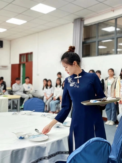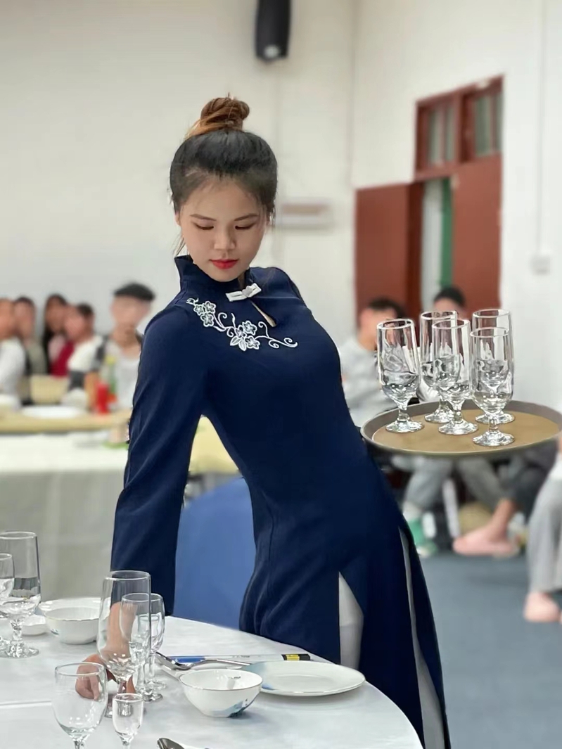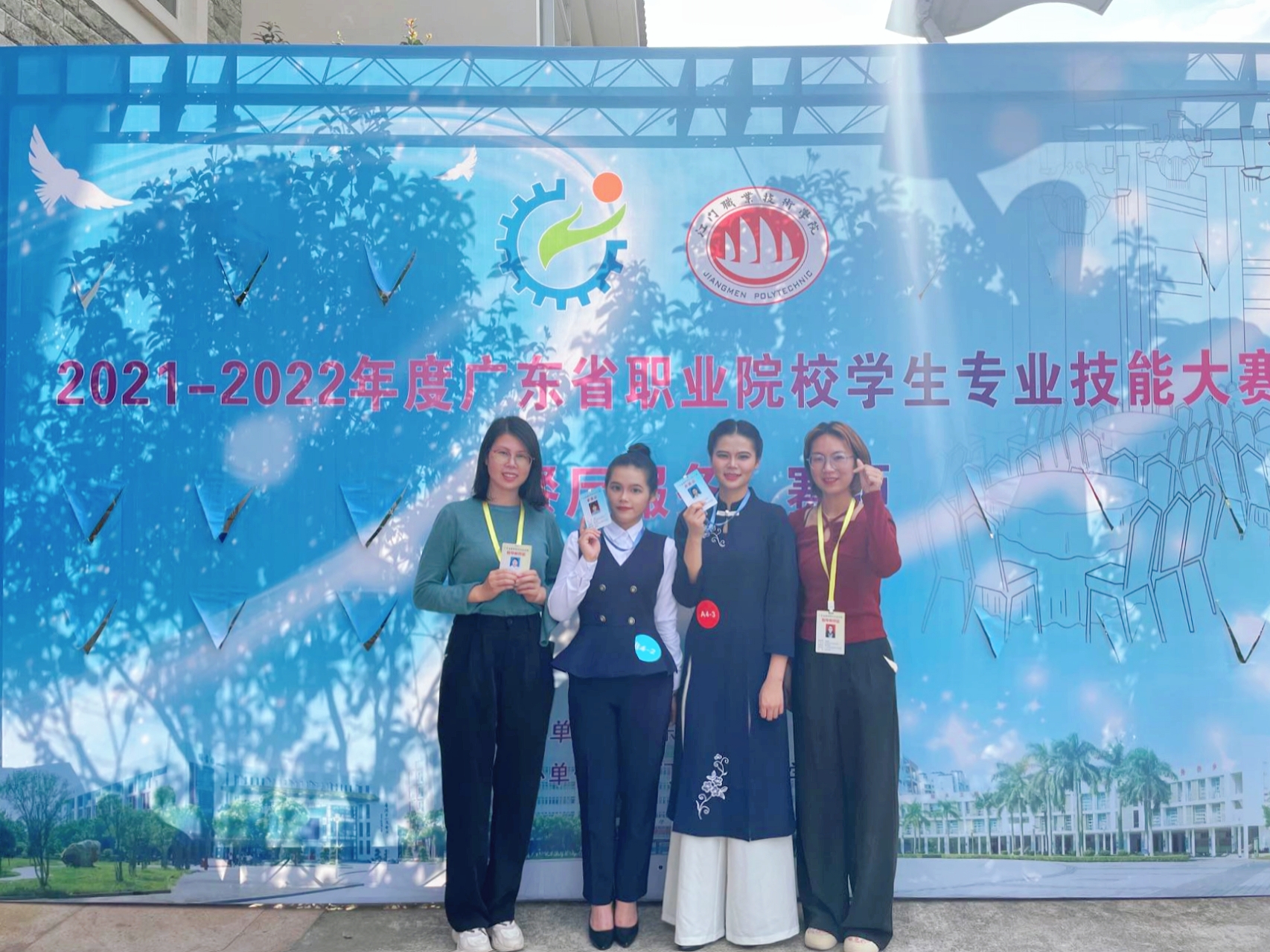 我院首次参加广东省职业院校学生专业技能大赛“餐厅服务”赛项,历经层层选拔,数月的悉心备赛及数位老师的精心指导,两位参赛选手从无餐厅服务基础、零比赛经验到实现了从量变到质变的突破。我院参赛团队,选手是新手,从头学;指导教师是新手,重新教;在新的局面下,备赛时间紧、任务重,对师生都是挑战。她们从一筹莫展,到略有思路;从小有所成,到游刃有余;从“一无所有”,到现在拥有.......无一不发挥着我院教师育人育才的初心以及学生优秀的服务技能和专业素养。