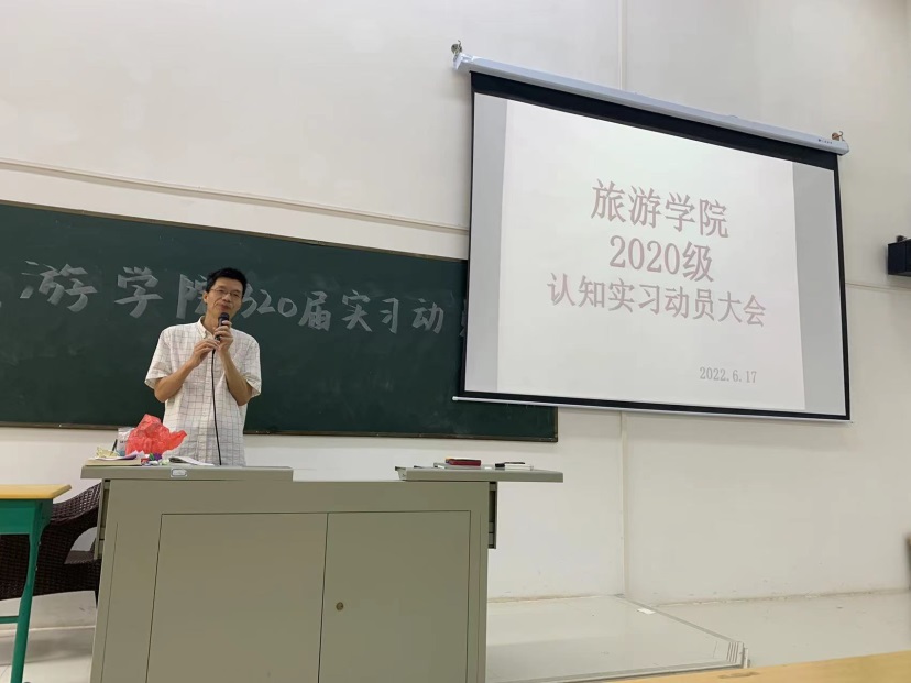 为贯彻落实科教兴国,人才强国战略,落实三全育人工作要求,更好地开展认知实习工作,使学生锻炼实践能力,了解社会需要,增强适应性及竞争力,助力职业生涯规划。旅游学院于6月17日下午3点在慎取厅召开2020级学生认知实习动员大会。冼周院长、见习指导老师以及旅游学院全体320级学生参加了本次会议。